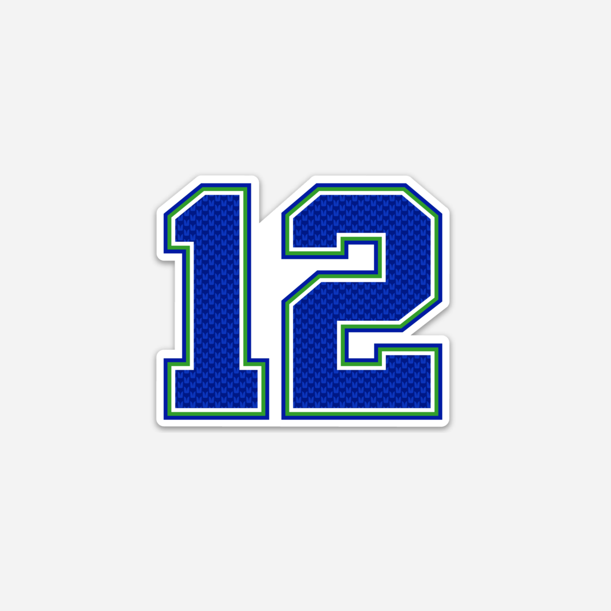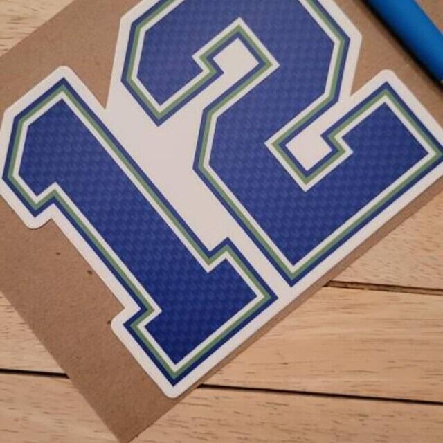 Seattle Seahawks 12th Man football fan sticker. Available in blue, light green, dark green, or grey.