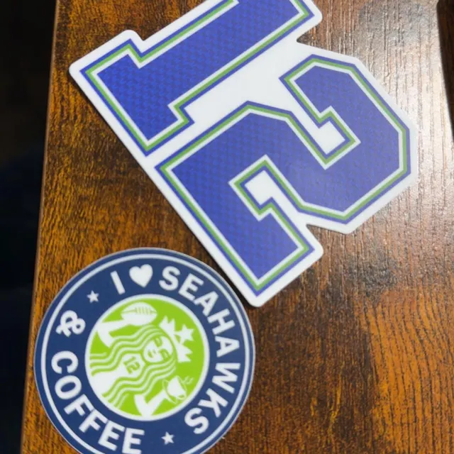 Seattle Seahawks 12th Man football fan sticker. Available in blue, light green, dark green, or grey.
