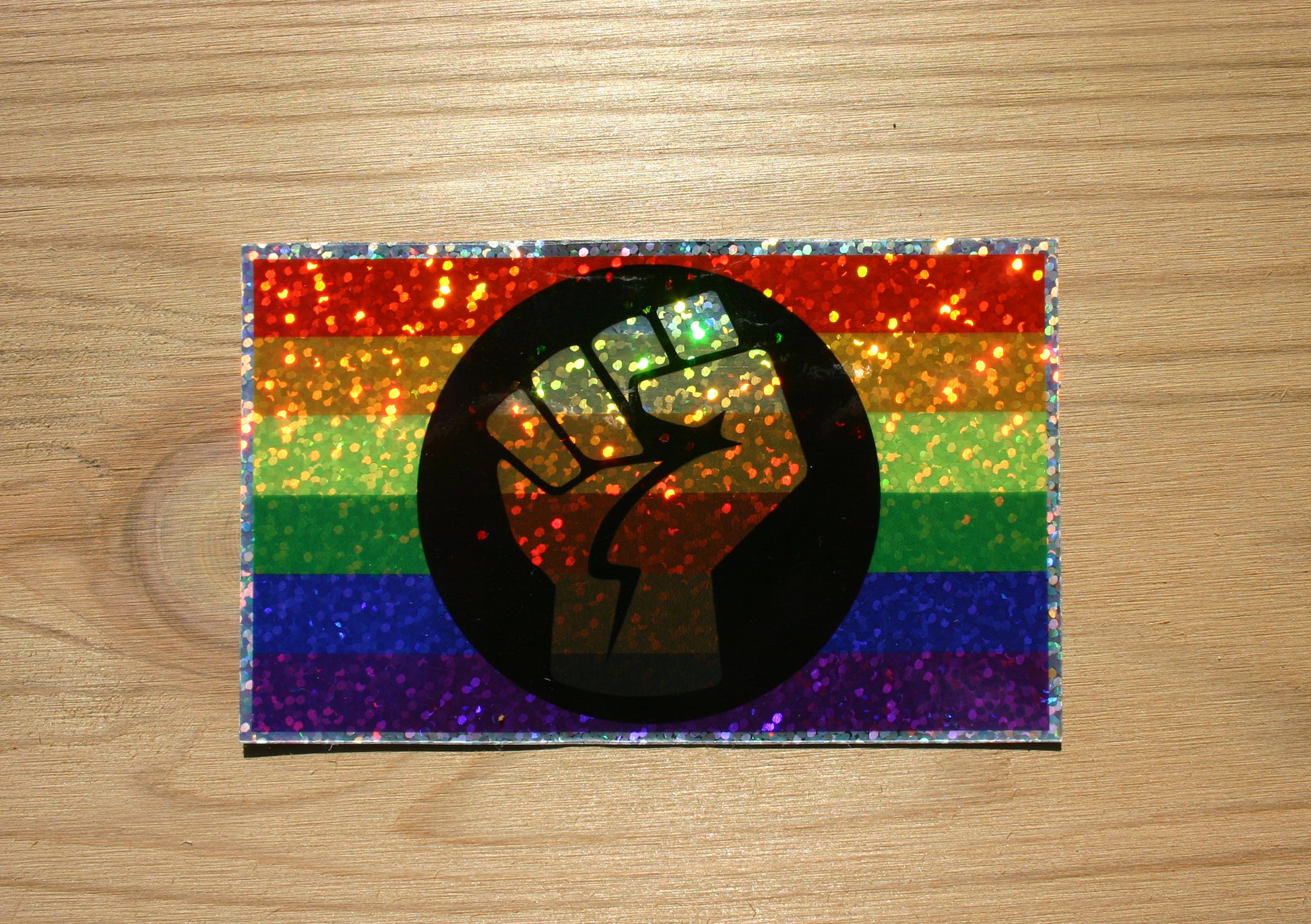 This flag builds on the rainbow by adding Black and Brown stripes to honor LGBTQ+ people of color. The raised fist at the center stands for strength, unity, and the ongoing fight against racism and injustice within and beyond the queer community.