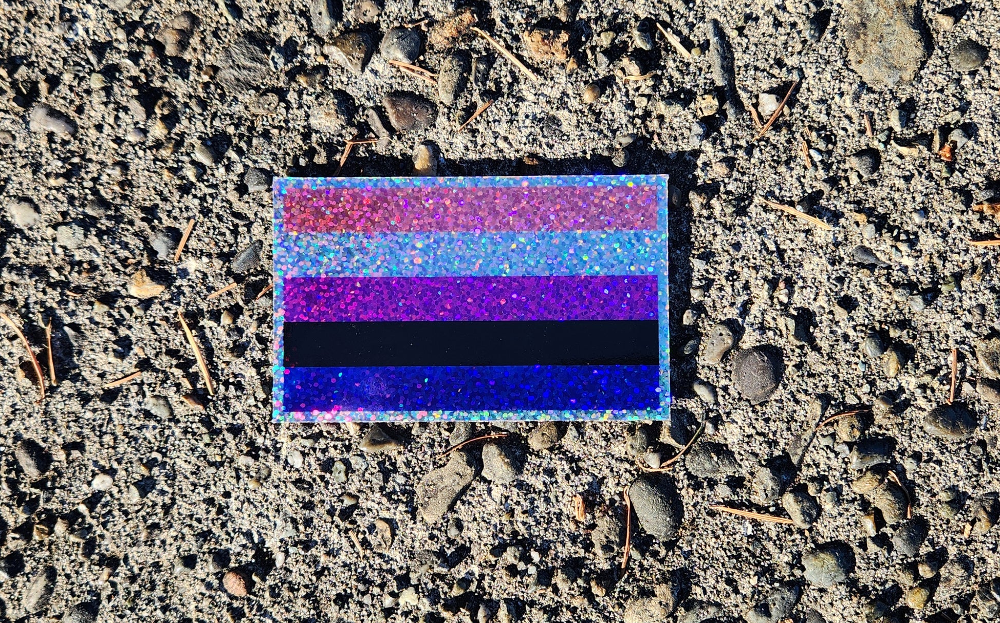 The genderfluid flag features five stripes. Pink and blue represent femininity and masculinity, while purple is inclusive of both masculinity and femininity. The black stripe stands for those who do not associate with any gender, while the white stripe includes all genders.