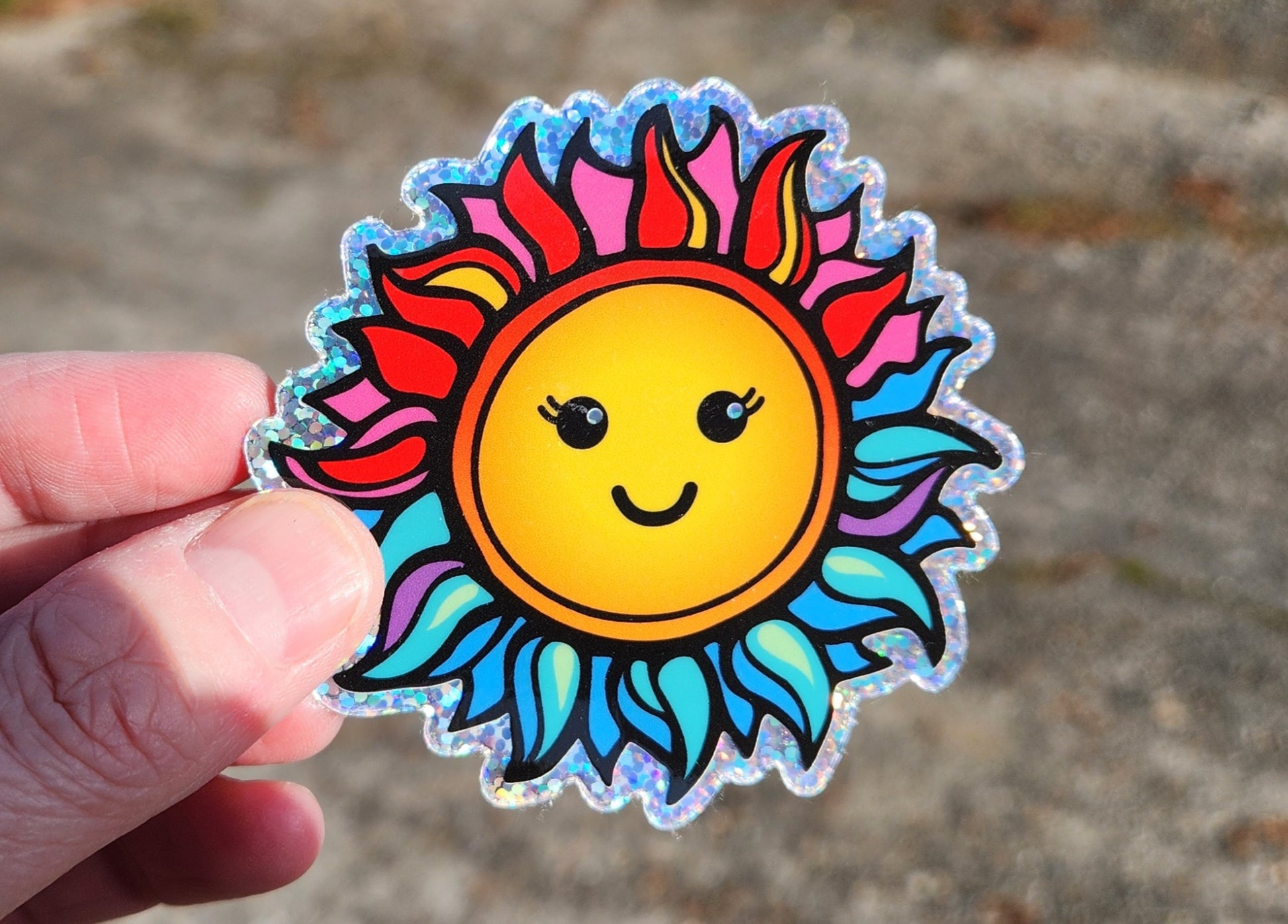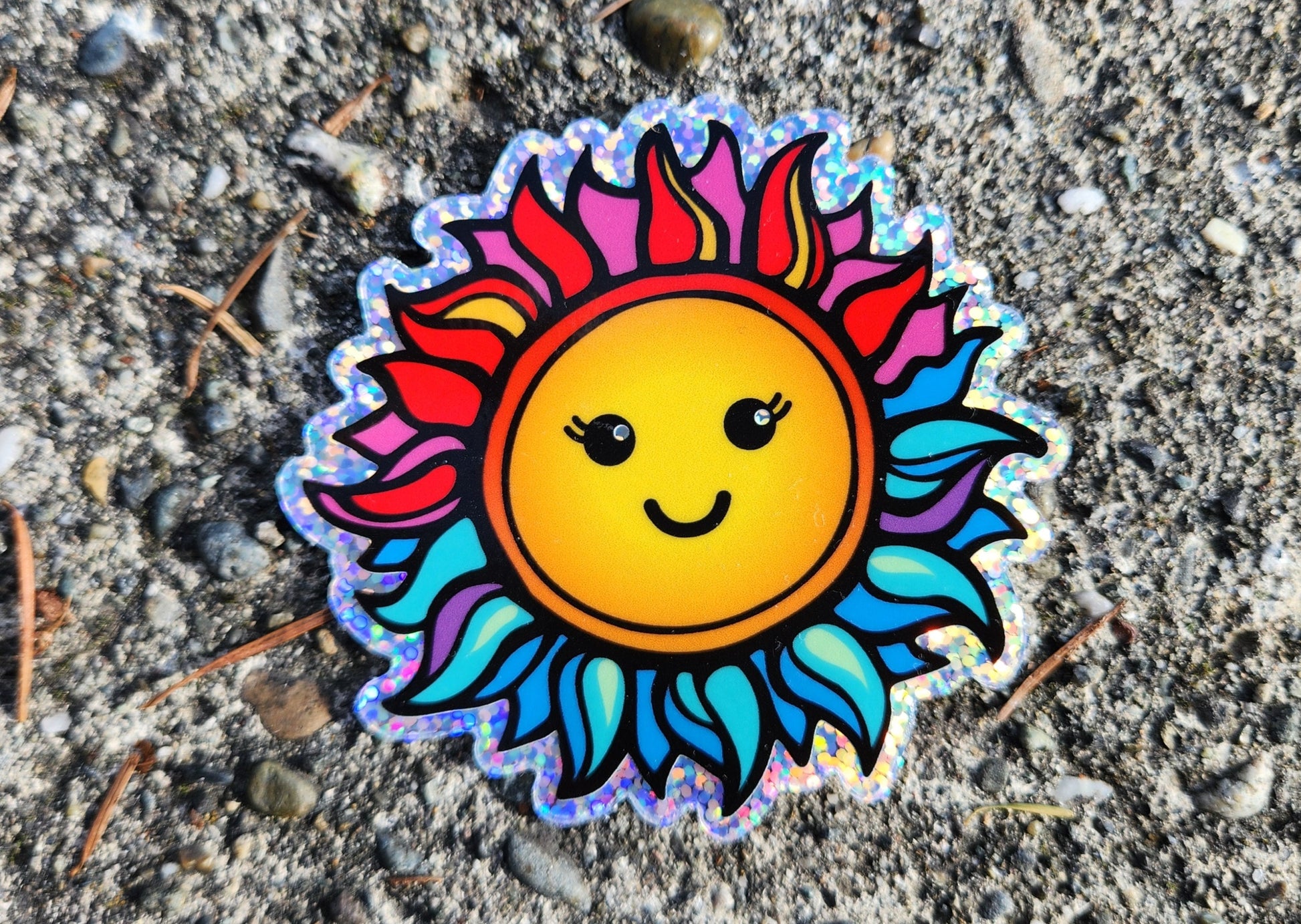 Happy Sun Glitter Vinyl Sticker