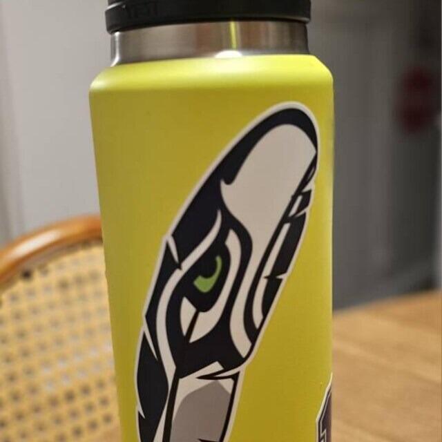 A version of the Seahawks logo in the shape of a feather. A creative decal made from durable, weatherproof vinyl.