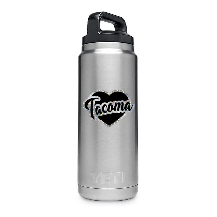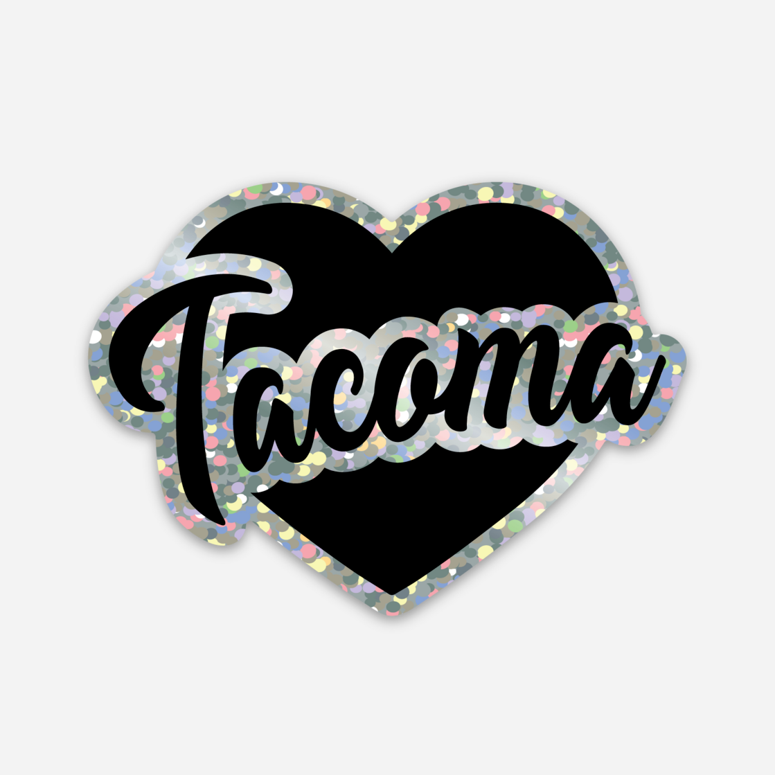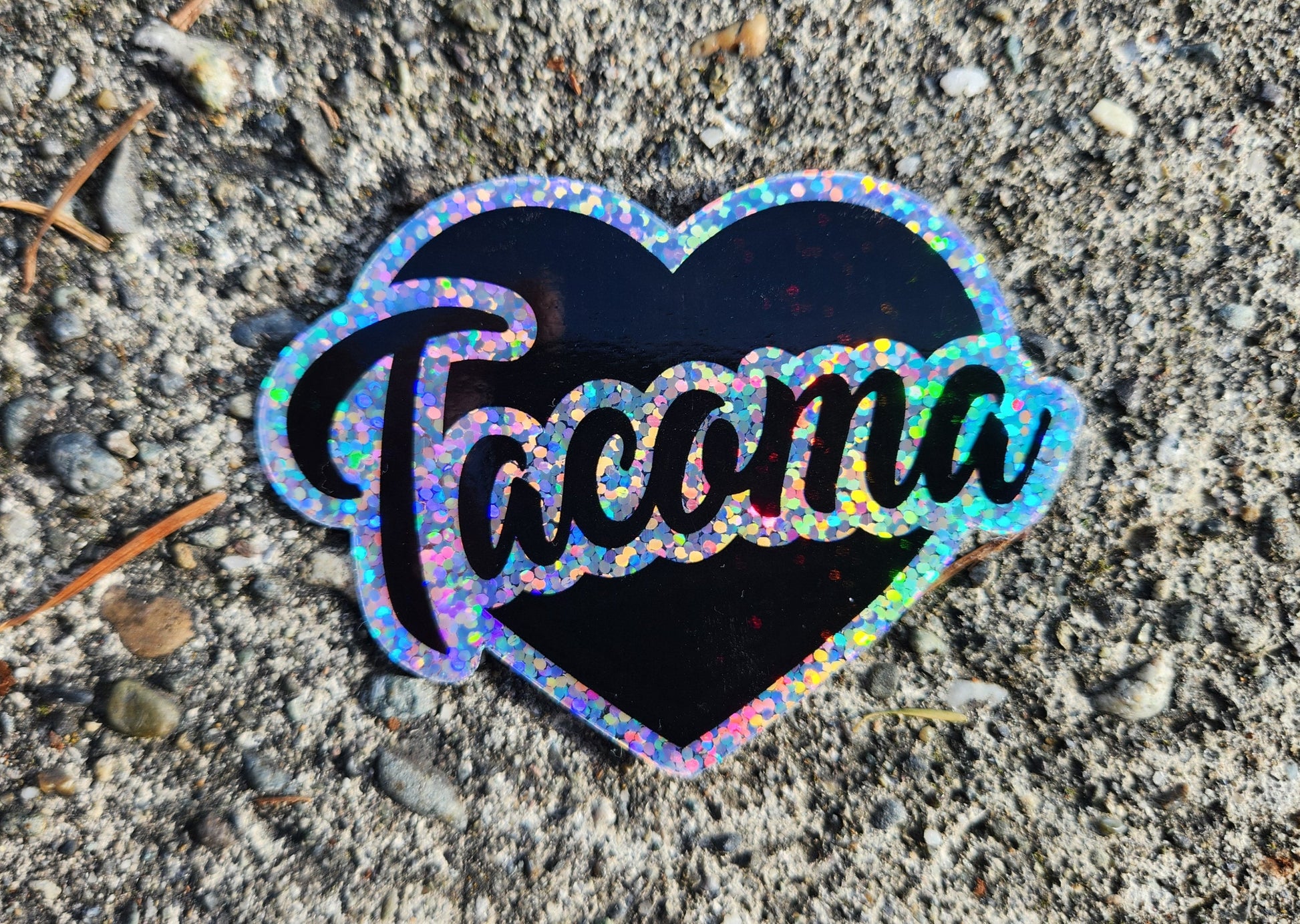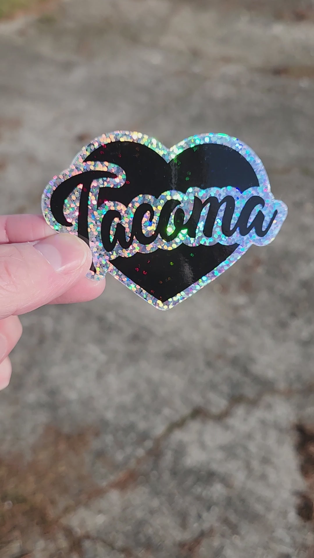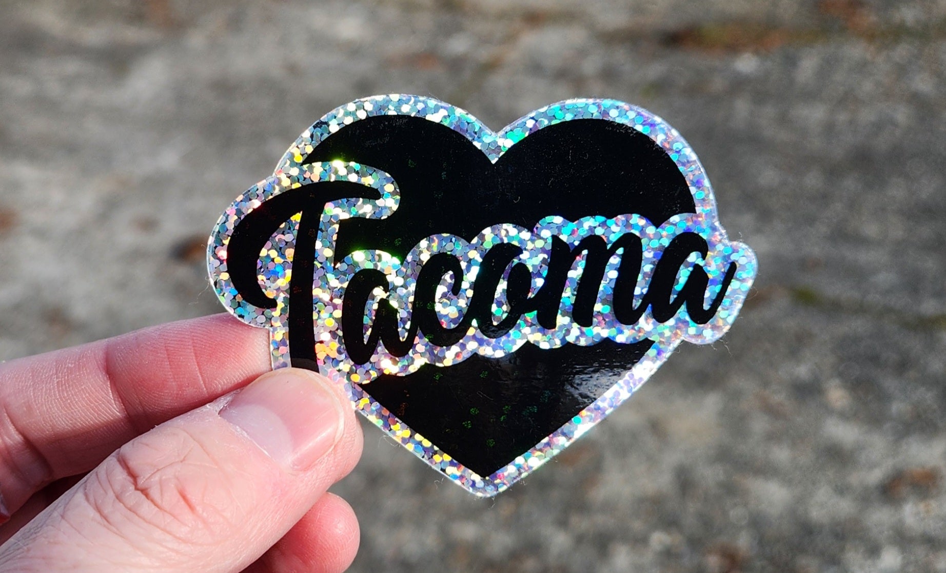Let your love for Tacoma shine with our brand new glittery black heart sticker! Perfect for water bottles, laptops, tablets, cars, trucks, and pretty much anywhere else it fits!